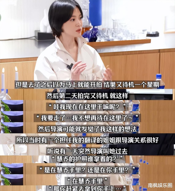 或许是怕宋慧乔跑回国,王家卫导演竟然突然叫宋慧乔的翻译,让其将宋慧乔的护照拿在翻译自己手中。